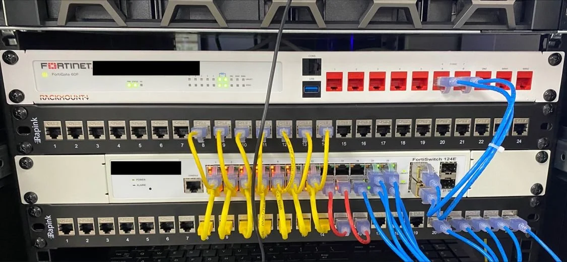Here’s a picture in fact from the field where we deployed this solution for a major automotive manufacturer to address NAT for nine overlapping cells and notice everything comes into a 24 port FortiSwitch on the bottom and only two cables actually are required to the FortiGate above.